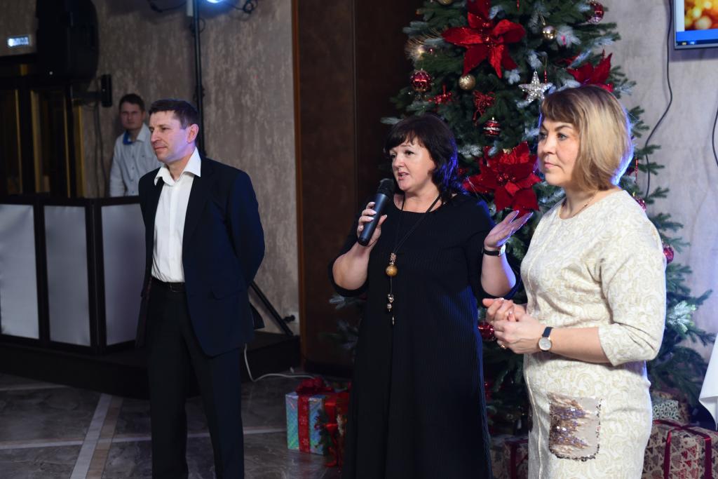 Гость вечера - руководитель волонтерского движения "Десятый круг" Евгений Бакало озвучил совместные планы и поздравил женщин в лице Деда Мороза с наступающим новым годом.